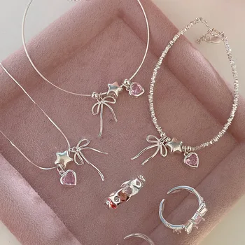 VENTFILLE 925 Sterling Silver Zircon Love Heart Bracelet For Women Girl Bowknot Stars Bead Snake Bone Chain Jewelry Gift Dropship Wholesale